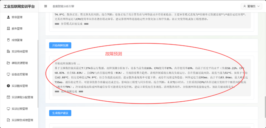 | 一级预警(红色) | 严重异常,可能导致设备损坏或安全事故 | 立即响应 | 管理员+安全负责人+现场教师 | 立即停机检查 |