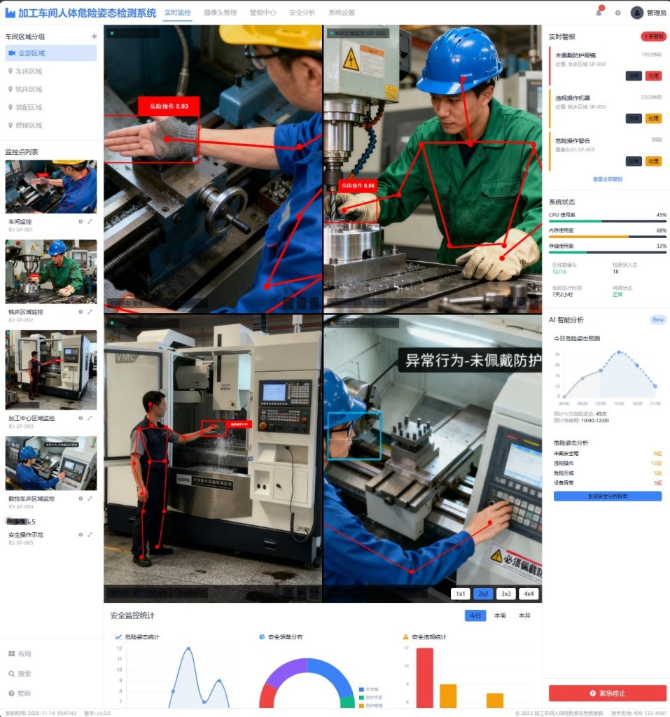 某职业院校机械加工实训室应用人员危险姿态预测功能,实时监控学生操作安全,一学期内成功预警危险操作86次,有效避免安全事故发生,师生满意度达98%。
