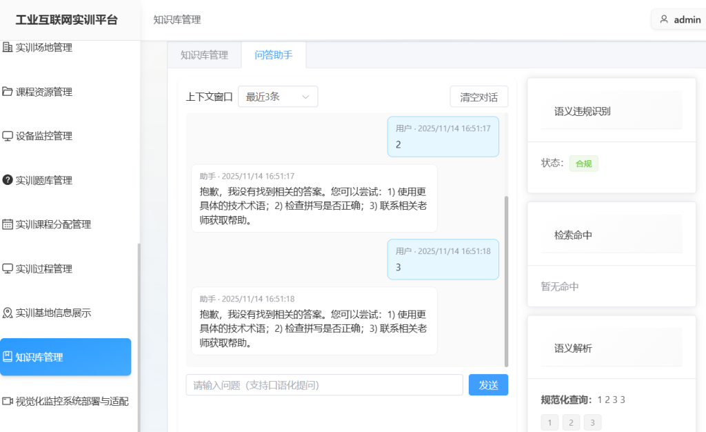 通过知识库与多轮对话功能,学生常见问题自助解答率达85%,教师答疑工作量减少60%,学生问题平均响应时间从10分钟缩短至30秒。